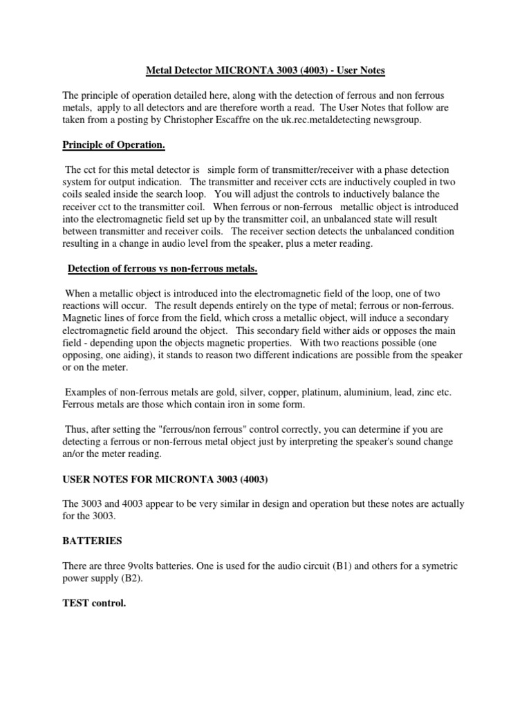Micronta 4003 Vlf Discriminator Metal Detector : A brief stuttering sound will be emitted when the metal detector.. Take a moment to become. Micronta model name / number: The pointer may drift slightly. There are 4 pages to choose from, but you will likely want the one titled operation. See images no box, instructions but available on line.