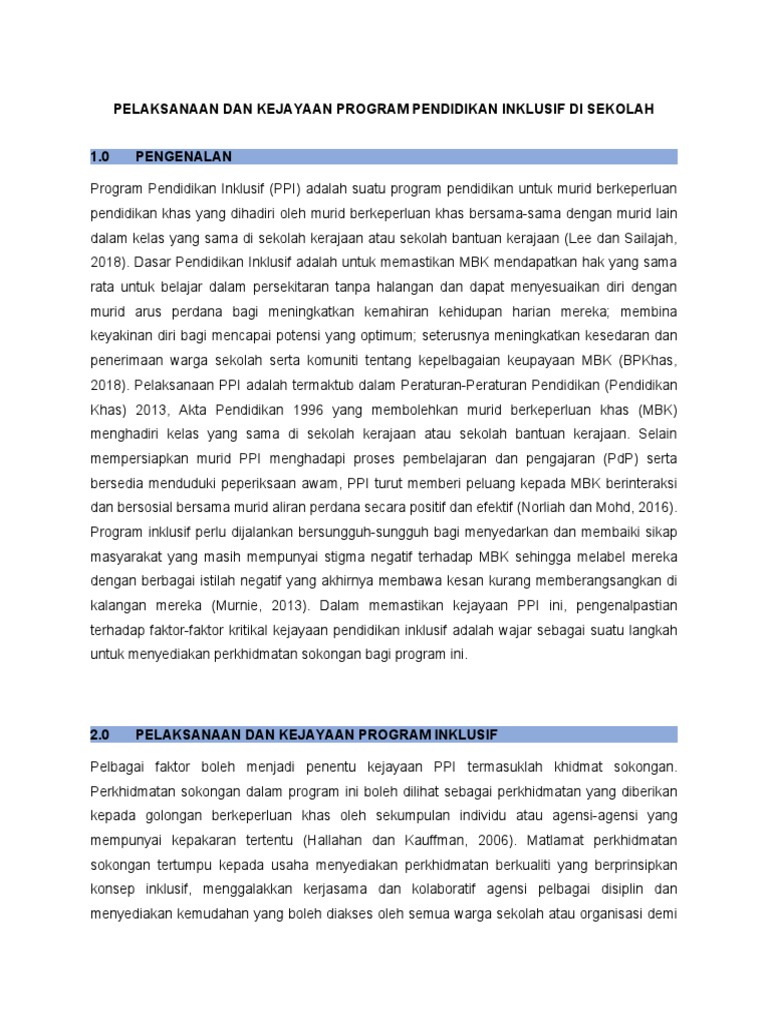 .dan faktor kritikal yang mempengaruhi kejayaan program serta peranan dan tanggungjawab pihak berkepentingan dalam pelaksanaan pendidikan inklusif. 2015) secara iindividu, anda dikehendaki : Inklusif dan menjamin kualiti pdp di dalam kelas inklusif. Seluruh guru dan pihak yang terlibat dalam pembelajaran murid tahu betul tentang individualized education program (iep) dalam setting pendidikan inklusif, kata devi. Pendidikan inklusif merupakan suatu strategi untuk mempromosikan pendidikan universal yang efektif karena dapat menciptakan sekolah yang responsif terhadap keberagaman karakteristik dan kebutuhan anak. Pendidikan inklusif sebagai pendidikan yang ramah untuk semua anak dengan sistem layanan pendidikan yang mensyaratkan anak berkebutuhan khusus belajar di sekolah penyelenggara pendidikan inklusif merupakan sekolah yang menampung semua siswa di kelas yang sama. Pendidikan inklusif disediakan oleh : Khadila binti ramdzan peralatan & infrastruktur aspek fizikal kelas mbk menggunakan sepenuhnya documents similar to faktor kritikal kejayaan pendidikan inklusif. Faktor kritikal kejayaan pendidikan inklusif. pada level apa anda mengimplementasikannya? Muhammad khairul hanan bin khalid 3. Aspek fizikal kelas yang bersesuaian. 24) menyatakan bahwa pendidikan inklusif didefinisikan sebagai sebuah konsep yang menampung semua anak yang berkebutuhan khusus ataupun anak.