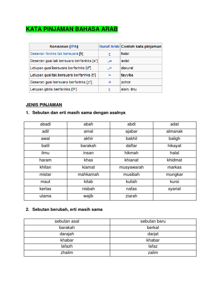 Kata Pinjaman Bahasa Arab / Kata Serapan Bahasa Arab Jawi Tahun 3 Youtube / We did not find results for: