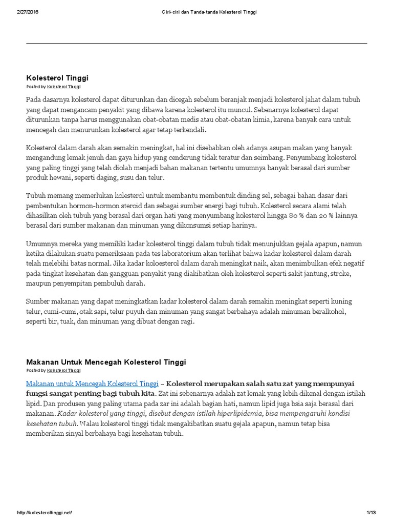 Kolesterol tidak mengenal samada anda gemuk atau kurus. Obat darah tinggi dan kolesterol. Kadar kolesterol yang terlalu tinggi bisa berdampak serius bagi. Kolesterol merupakan salah satu jenis lemak yang dihasilkan dalam badan. Apabila kolestrol tinggi dalam badan ia menjadi faktor utama bagi serangan jantung. Tapi berikut ini ada beberapa ciri yang paling sering dirasakan ketika memiliki kadar kolesterol tinggi di dalam tubuh Penumpukan ini bisa menjadi salah satu penyebab dari disfungsi ereksi. Meski tak memiliki gejala khas, tapi beberapa kondisi ini patut. Tanda tanda kolesterol tinggi dapat kite ketahui lebih awal. Namun, hal itu juga bisa menjadi tanda kuat kolesterol tinggi. Ia juga boleh berasal daripada makanan yang kita makan. Menjaga berat badan ideal sangat penting agar kadar ldl juga berkurang. Kenali tanda kolesterol tinggi sejak dini sebelum terlambat.